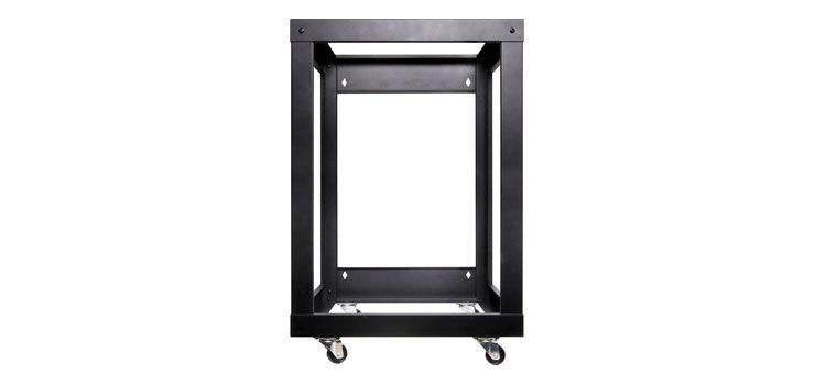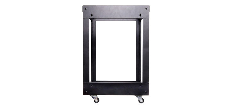 This 15RU 19" open rack frame allows you the option of side mounting to the wall surface, or use as a freestanding rack on castors. When mounted to the wall, the equipment faces perpendicular to the wall face allowing access to both sides of the equipment for cable terminations and changes to connections. This also allows for greater mounting depth with an internal allowable depth of 520mm. Equipment can be bolted in from either side with punched uprights on all corners.