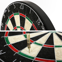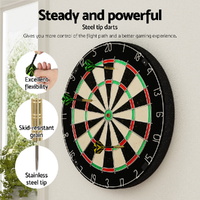 Get competitive at your next party or function with a classic Dartboard. The dartboard is made from premium quality sisal fiber panels with a sturdy rotating score ring and features six heavy-duty darts for classic play. The board has unique features such as a staple-free divider to prevent bounce-out, an extended dart catchment area and protective rubber feet. The sisal fiber panels are self-healing and the scoring ring rotates to extend the life of your dartboard. The darts are made from stainless steel and feature a skid-resistant grain and flexible top, giving you more control over the flight path. The board is not only a fun game but its upgraded design is stylish and modern and will suit any home or business. Easy to assemble with the included wall mount bracket and fixings, youll have plenty of fun with our sporty premium Dartboard.