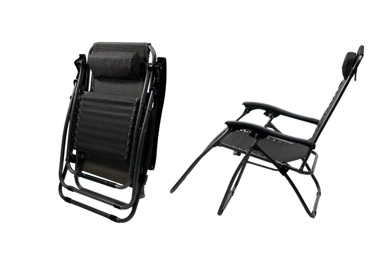- Features: Fully-adjustable, reclining, durable powder-coated steel frame, padded back and seat, UV protected, heavy-duty fabric, plastic arms with easy locking system, removable padded headrest, folds flat for easy transportation, pack of two chairs