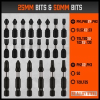【Complete 22+3+1 Tool Set】22 impact screwdriver bits, 3 drill bits, 1 magnetic bit holder. Complete combination for most driving and fastening jobs.
