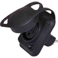 This 3 Pin IP54 Female Chassis Mount XLR Connector features a dust cover to keep dust and dirt from getting in. It is fitted with the standard XLR locking mechanism, ensuring a reliable contact. The construction is sturdy and features high quality contact insert