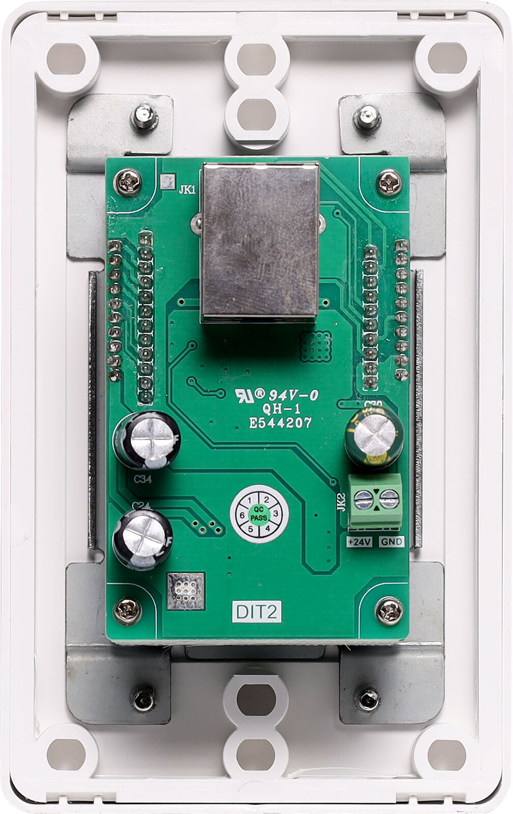 Powered by using PoE (Power over Ethernet), or DC24V power supply. Features high-quality circuits to provide studio grade of performance without worrying about ground loops or other common audio problems. High performance, simplicity of operation, and ef?ciency of installation makes this wallplate ideal to use for installed sound systems, teleconferencing, etc.