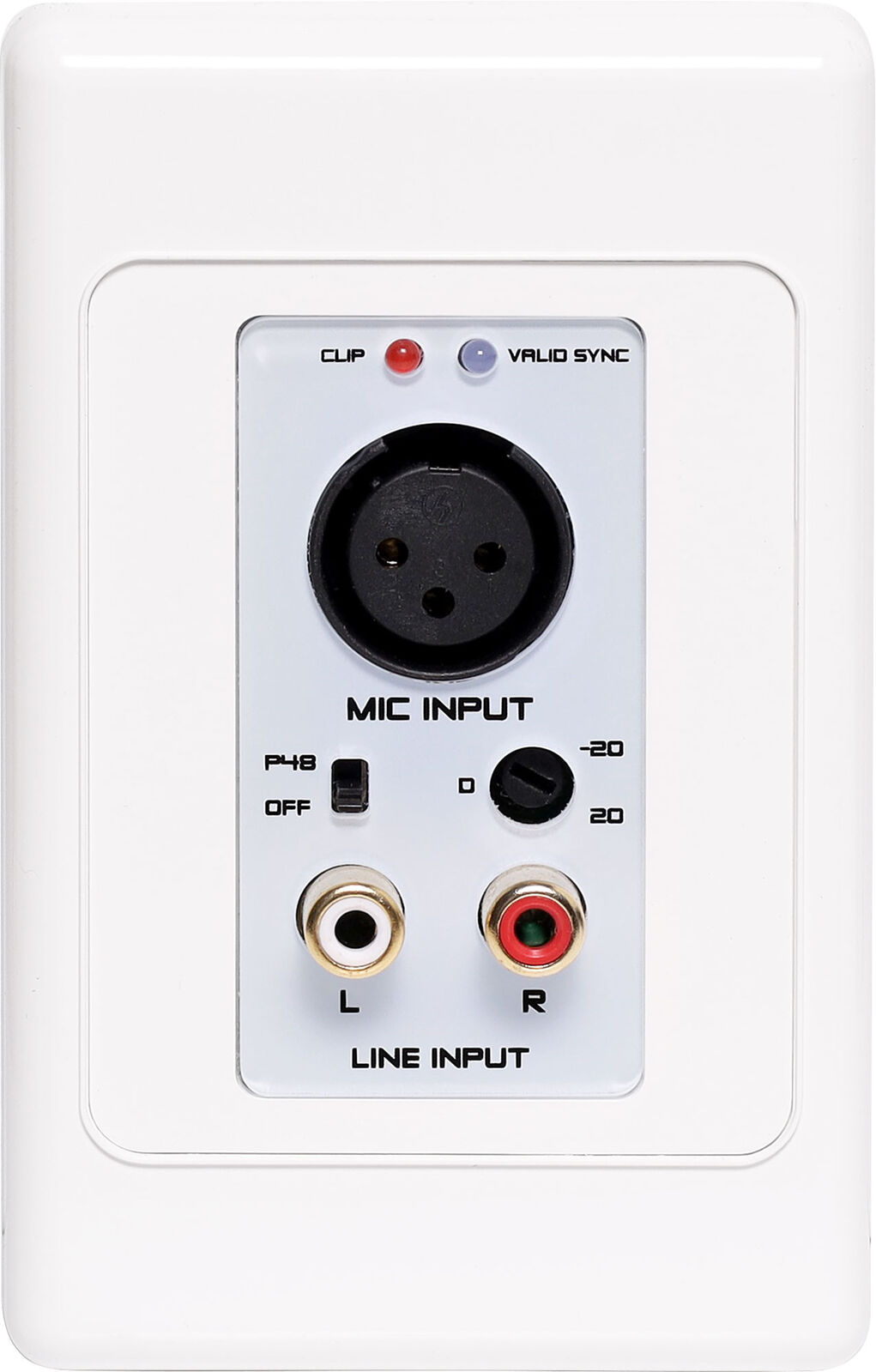 This wallplate is designed to accept Mic input and RCA Line level input with the Dante interface. Equipped with high performance of microphone pre-amplifier circuit and phantom power, the wallplate supports condenser or dynamic microphone and provides perfect sound to the Dante network via standard CATx cable with RJ-45 connector.