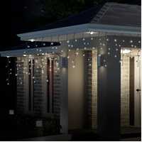 Enhance your festive décor with our 300 LED Icicle Lights. Featuring a striking blue and white color combination, these lights also come in Cool White, Multicolor, and Warm White options. With a 5.9-meter lit length and 5-meter cable, they offer a stunning display with 10 cm spacing between each light. Enjoy a mix of flashing effects and a steady glow, all controlled by Memory Hold Technology. Perfect for both indoor and outdoor use.