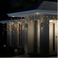 Enhance your festive décor with our 300 LED Icicle Lights. Featuring a striking blue and white color combination, these lights also come in Cool White, Multicolor, and Warm White options. With a 5.9-meter lit length and 5-meter cable, they offer a stunning display with 10 cm spacing between each light. Enjoy a mix of flashing effects and a steady glow, all controlled by Memory Hold Technology. Perfect for both indoor and outdoor use.