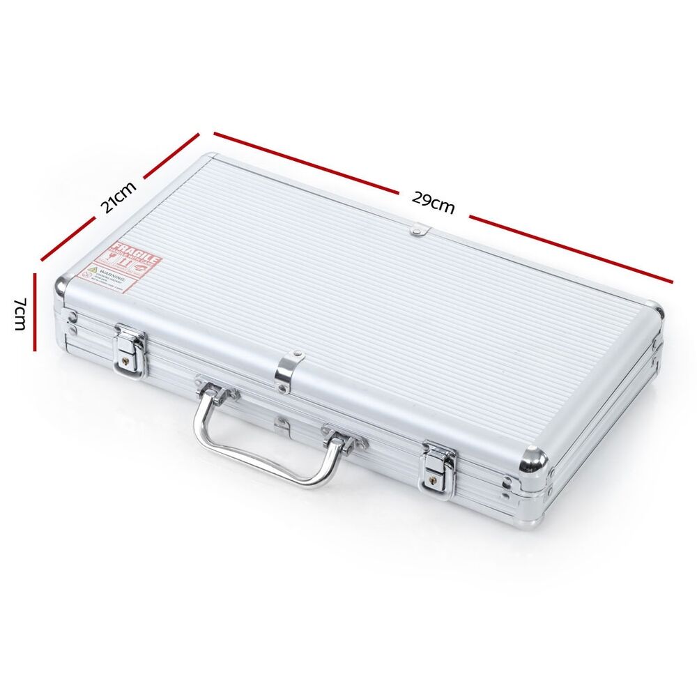 Make you poker nights a whole lot better with our premium Poker Chips Set. Comprising a 300-piece chips set with 50 pieces each of black, blue, green, red chips and 100 pieces white chips, the set also includes two sets of playing cards, five dices and three buttons, the set provides an authentic casino-style playing experience. The chips are quality-made in eco-freindly plastic with metal inserts to replicate the heavy and realistic feel of casino-style clay chips. The entire ensemble is set in a heavy-duty and stylish almuninium case that is also lockable with keys included. With so much going for the poker chips set, it is certainly a great deal for you.