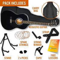 Full-size Guitar, Gigbag, Stand, Spare Strings, String Winder, Strap, Capo, Picks, 6 Months Online Guitar Lessons
