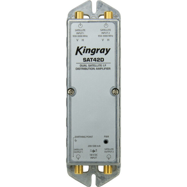 Dual Input and F-Type Satellite Distribution amplifier. Capable of powering both vertical and horizontal LNB’ssimultaneously via the on board regulator.
