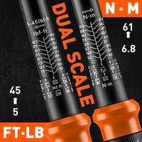 【High Precision Dual Scale】Each torque wrench features dual-range scales (FT.LB/N.M) for precise torque measurement, calibrated to ±3% accuracy. Comes with a calibration certificate to ensure reliability and compliance with ASME B107.300-2010 and ISO6789-2017 standards