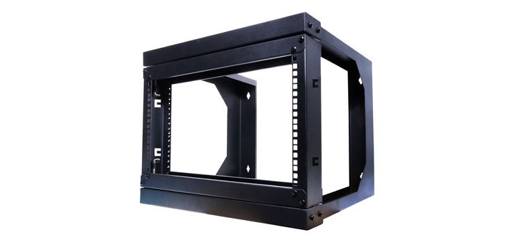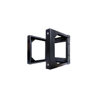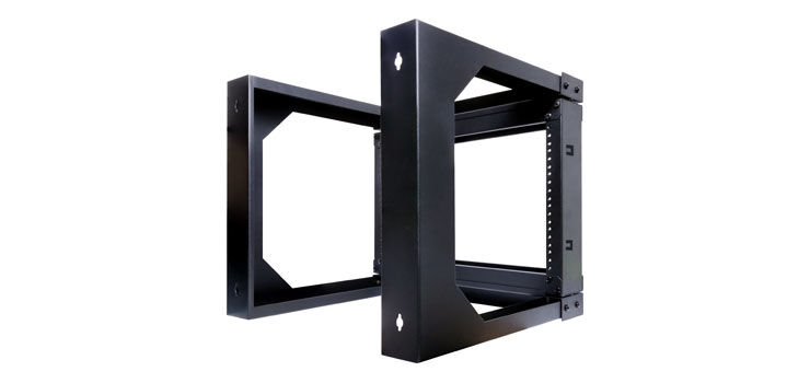 An open frame hinged wall mount 6RU 19 rack system designed for wall mounting equipment up to 420mm deep. Ideal for combinations of patch panels, security and audio equipment. Spring loaded latches secure the front face closed. When opened, the entire front face opens to allow access to the rear of mounted equipment. 6RU size is perfect for small comms and audio racks. Overall depth from wall 460mm.