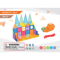 Spark creativity and have hands-on fun with this 78-piece set of non-toxic magnetic tiles from Gem Toys! Perfect for building, learning, and imaginative play, these vibrant tiles easily snap together to form endless shapes and structures. Comes with a convenient storage bag for tidy cleanup and portability. Safe, educational, and fun for kids ages 3+!