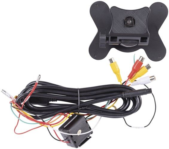 The unit comes with an adjustable swivel bracket with double-sided tape for adhesion on clean flat surfaces. A 4 pin mini din to 2 RCA and power cable are also supplied.