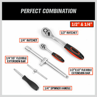 13-1/4" DR. Sockets: 4, 4.5, 5, 5.5, 6, 7, 8, 9, 10, 11, 12, 13, 14mm