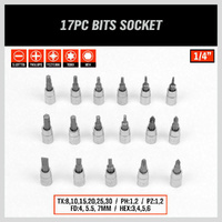 17-1/4" DR. Inserted Bit Sockets: HEX-3, 4, 5, 6mm, REG-4, 5.5, 7mm