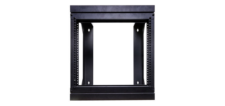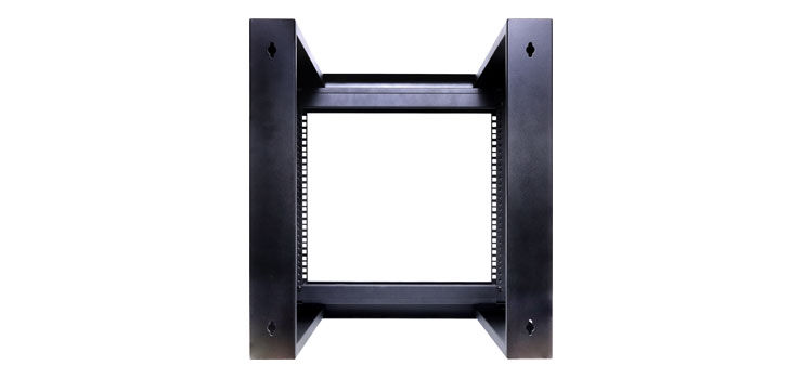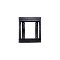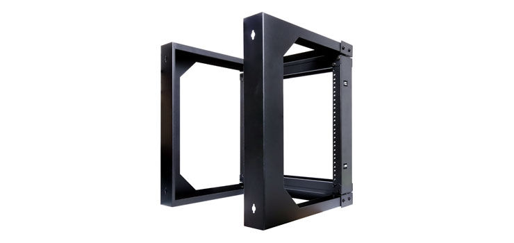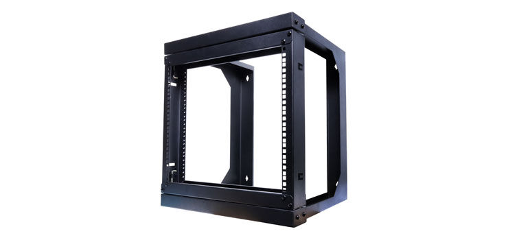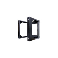 An open frame hinged wall mount 9RU 19 rack system designed for wall mounting equipment up to 420mm deep. Ideal for combinations of patch panels, security and audio equipment. Spring loaded latches secure the front face closed. When opened, the entire front face opens to allow access to the rear of mounted equipment. 9RU size is perfect for small comms and audio racks. Overall depth from wall 460mm.