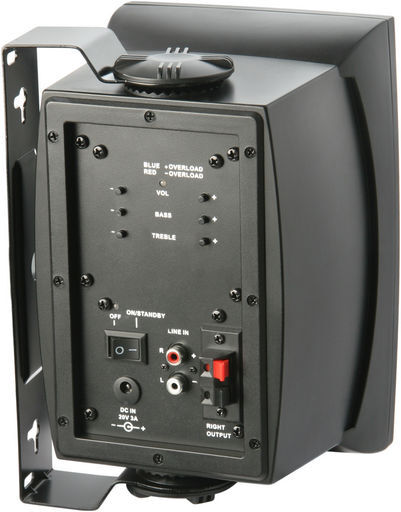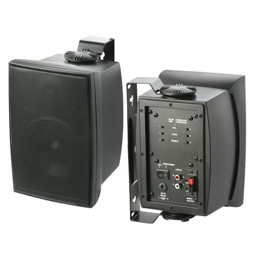 High performance premium sound with convenience and flexibility. Connect any low-level line device to these speakers via RCA/3.5mm for instant HIFI sound. Push-button adjustable Volume, Bass and Treble with external remote control. Powerful polypropylene 5 inch woofer & dynamic tweeter driven by a very efficient class D high power 40Wrms built in amplifier module for excellent sound reproduction and control. Ideal for many applications. Manufactured using durable and high quality components for IP51 weather resistance and aluminium grilles for long life with no discolouration. Includes adjustable wall / ceiling mounting bracket. Includes external 20Vdc 3A switch-mode in-line power pack for maximum wattage. These speakers will also run on DC from 12Vdc to 20Vdc (effects wattage output)