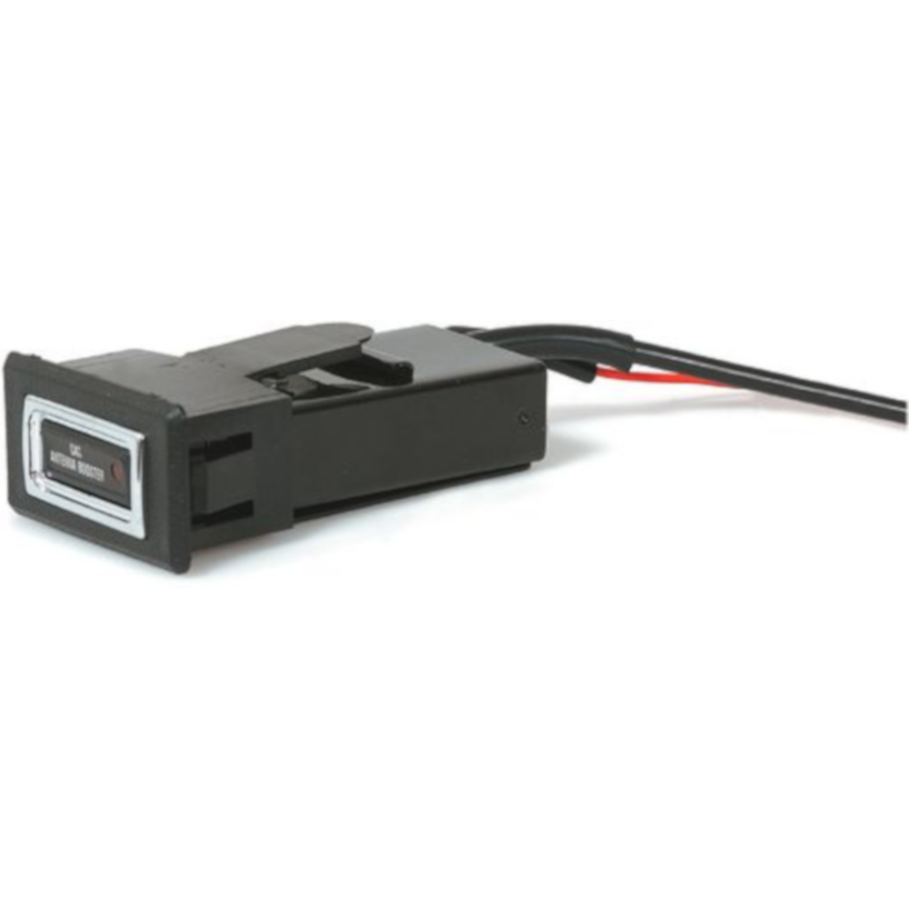 This FM antenna booster will obtain clearer and stronger reception in fringe reception areas. It provides a 10dB gain over the FM spectrum. In-dash or under dash mounting, includes 53cm antenna cable and power cable. 12Vdc. Does not boost AM. Front panel I/O switch.
