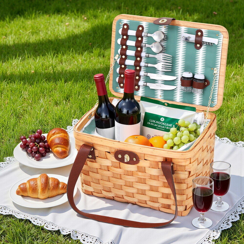 Alfresco 4 Person Picnic Basket Set Wooden Blanket