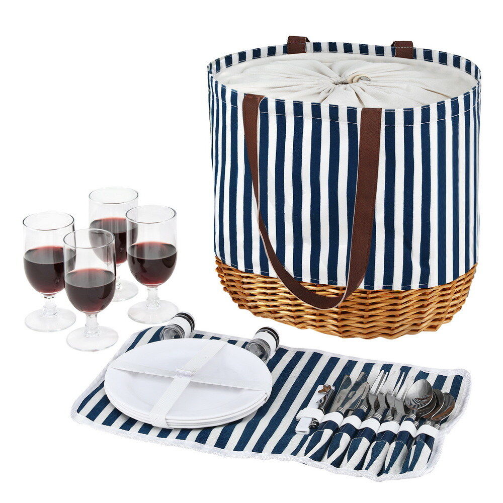 Alfresco 4 Person Picnic Basket Set Insulated Blan