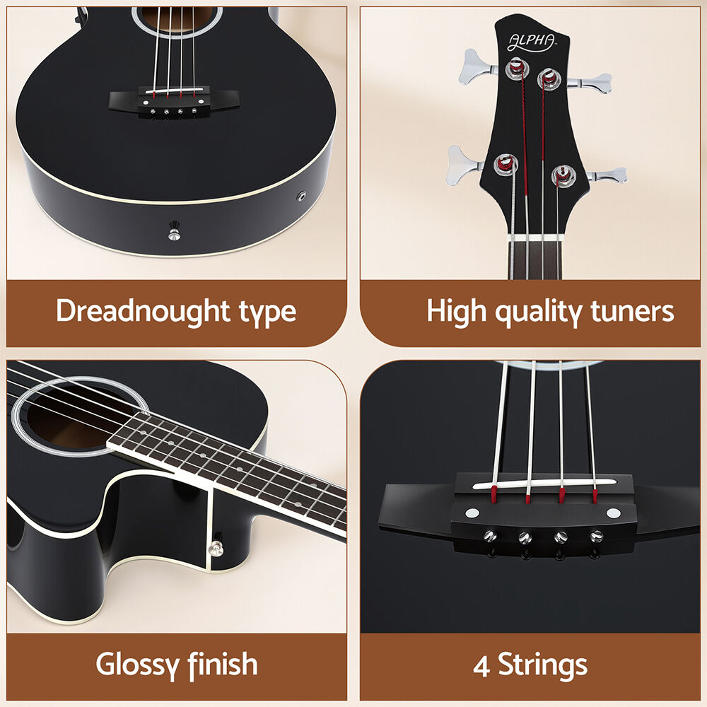 Alpha 43" Acoustic Bass Guitar Black 4-Band EQ