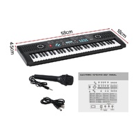 Unlock your musical potential with the Alpha 61-key digital piano keyboard. This electric keyboard piano features 13mm wide keys, ideal for learning. Explore 10 demo songs, 100 rhythms, and 100 tones for endless creative expression. With 5 percussion options, an LED display, and audio input/output, it's perfect for kids and aspiring musicians. This electronic keyboard piano operates on 5V power or 4 AA batteries (not included) for portable play. A microphone is included for added fun.