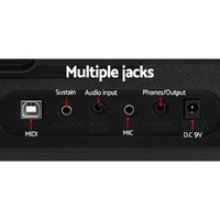 Jacks: USB-MIDI, Pedal, Audio in/out, Headphone, MIC