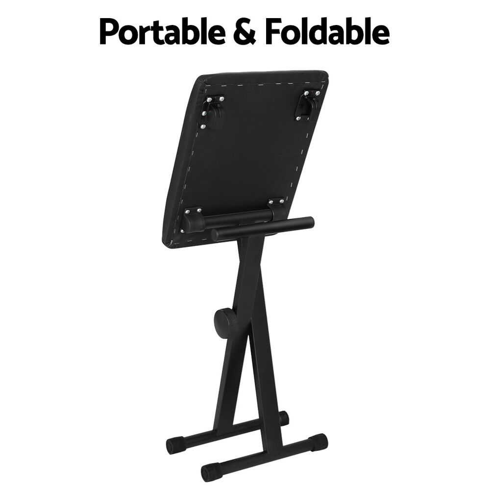 Spend your hours playing and singing your favourite songs in comfort with the Alpha Piano Stool. Simple and practical, the piano stool is made from premium PU fabric atop black powder-coated steel legs, connected with thick iron plating. The extra thick foam padding gives you a comfortable seat for long hours of playing. The seat is adjustable so you can always be at the perfect height for playing. The anti-slip caps keep the seat sturdy in one place while also protecting your floors. Enjoy playing in comfort with the Alpha Piano Stool.