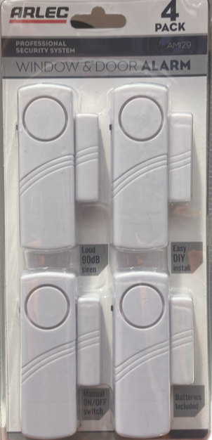 This Arlec window and door magnetic contact alarm activate an alarm when the window or door is opened. 8 Arlec Alkaline batteries are included to make sure you can power the alarms straight away.