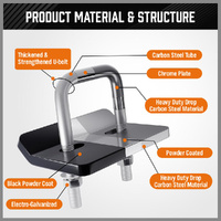 Includes a heavy-duty steel U-bolt and thick powder coated plate that will stand up to all weather conditions and loads.