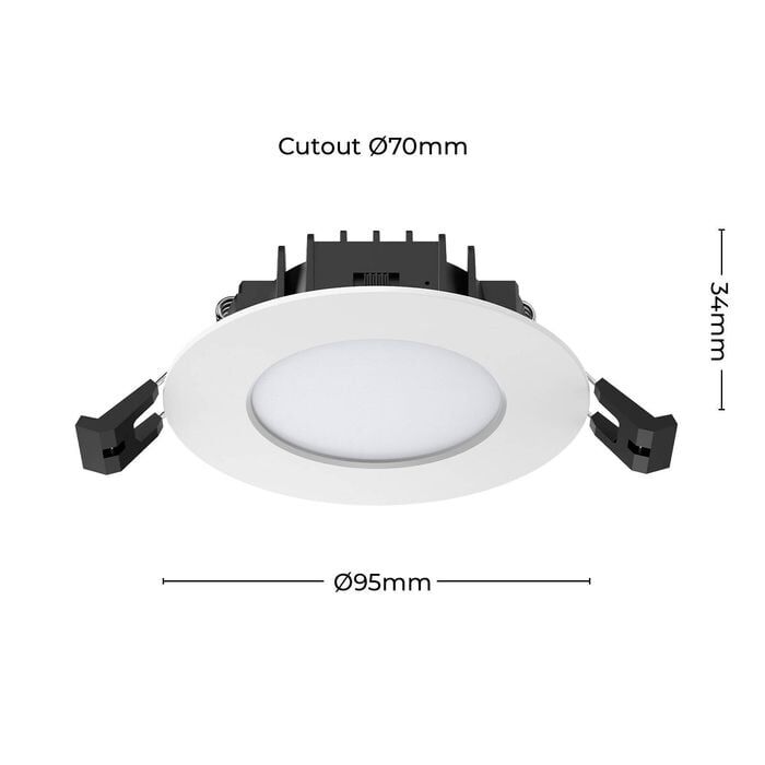 The Arlec LED Downlight offers customizable lighting for any space. Its tri-color function lets you choose between warm, cool, or neutral hues by adjusting the temperature switch on the external driver before installation. The product is fitted with a lead and plug for easy installation and the dimmable LED driver is suitable for use with trailing edge, and universal dimmers.