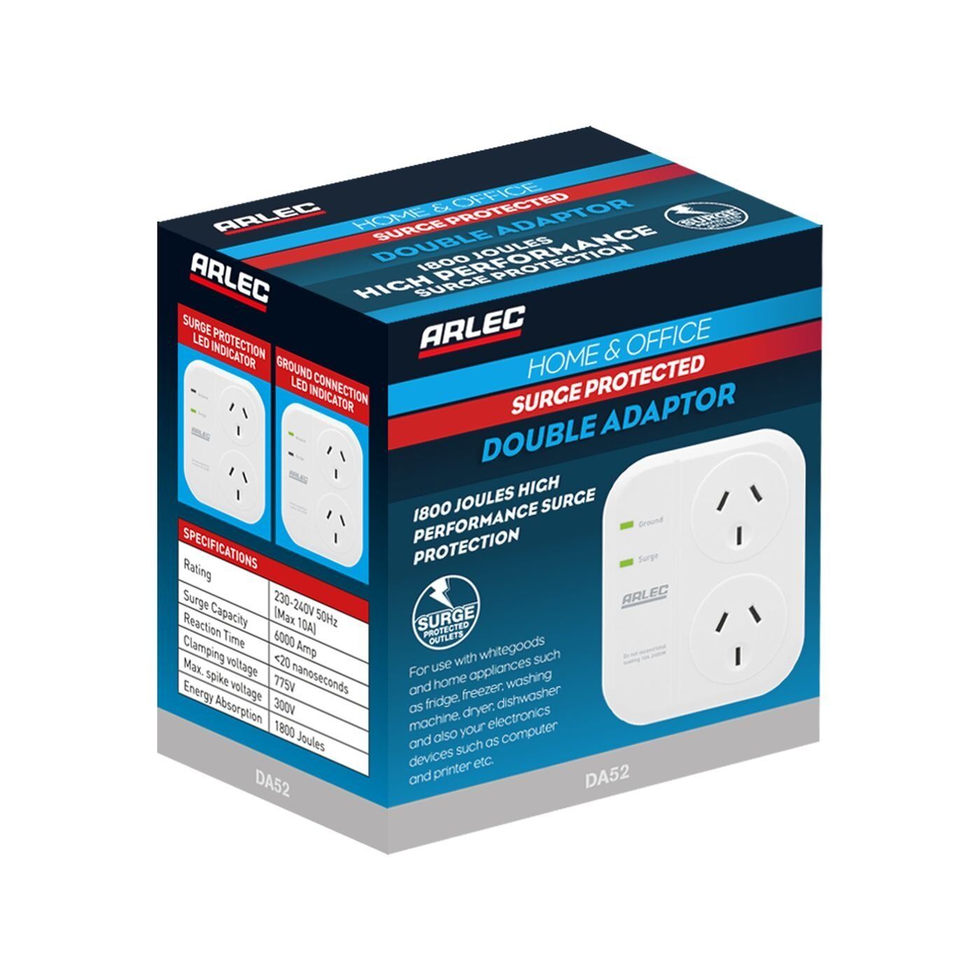 This Arlec double adaptor is built with premium surge protection that will protect your electronic devices from damaging voltage spikes. Power two devices with one power point with the space saving compact design of this double adaptor.