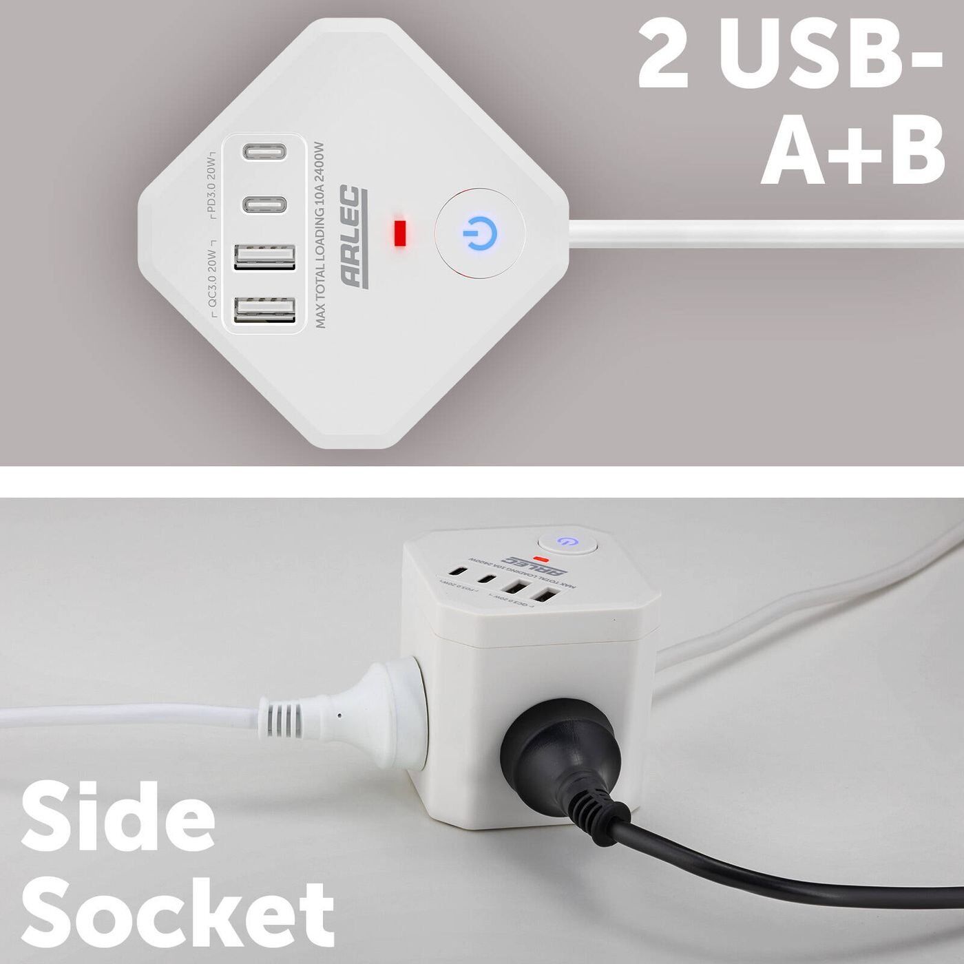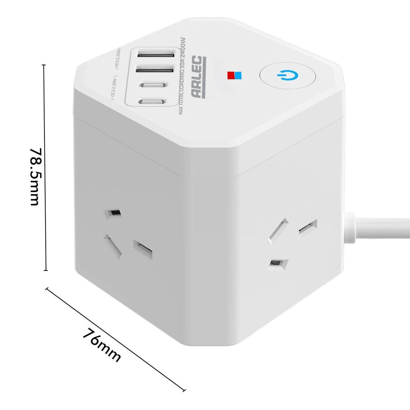 Arlec 4-Outlet Power Cube With PD20W USB-2A+2C