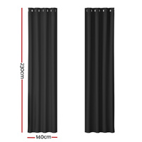 Artiss 2X Blockout Curtains Eyelet 140x230cm Black