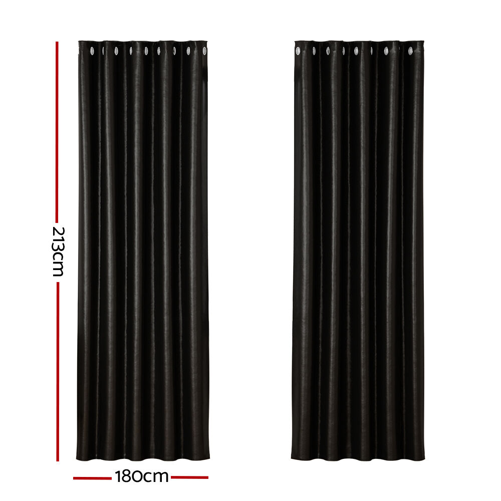 Artiss 2X Blockout Curtains Eyelet 140x230cm Black