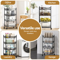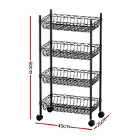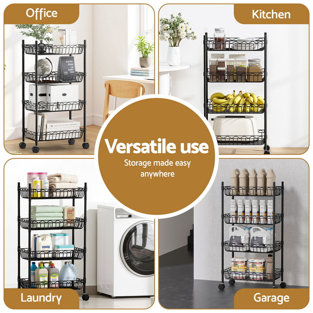 The Artiss 4-Tier Shelving Unit offers a durable and versatile storage solution for any space. Constructed with a reinforced steel frame and finished with rust-resistant powder coating, it supports up to 20kg per shelf, making it ideal for kitchens, garages, or home organisation. The adjustable shelves with V-shaped mesh surfaces allow you to customise storage heights while keeping items secure. Equipped with smooth-rolling, lockable wheels, this shelving unit is easy to move and position as needed. Quick to assemble and low maintenance, it's the perfect compact storage cart to keep your space tidy and organised.
