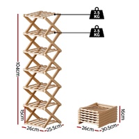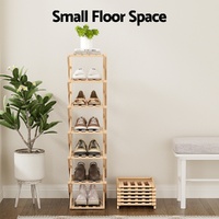 Maximise your space with this elegant Artiss shoe rack! Crafted from sustainable bamboo, this 7-tier organiser provides smart shoe storage for entryways, laundries or garages. The foldable design features a stable X-frame structure, vented panels for airflow, and smooth rounded corners for safety. With no assembly required, it offers instant organisation - each shelf holds 2.5KG. Perfect for rental homes! Compact dimensions: 23.5x25x104cm. Pine finish. 1 package.