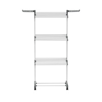 Prepare for laundry day with the heavy-duty, 3-tier Clothes Drying Rack from Artiss. The rack is constructed from sturdy powder-coated metal tubing and solid plastic and can support up to 20kg of laundry. Not only are there 3 generous tiers to hang clothes, linens and undergarments, but there are two handy side hooks that will support various hangers, and two lower bars allow for additional storage. Generous spacing between each bar allows for proper airflow, helping your clothes dry fast. The entire unit is incredibly lightweight and portable, and four convenient lockable wheels can help you move around and keep in one place as required. Once laundry day is over, simply fold the unit and store it away until needed. For fast and convenient clothes drying, look no further than the Artiss Clothes Drying Rack.