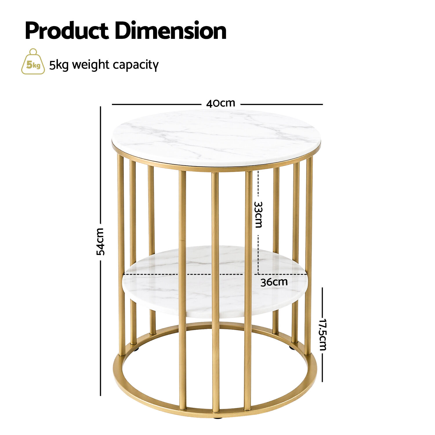 Artiss Coffee Table 2-Tier Round Marble Effect