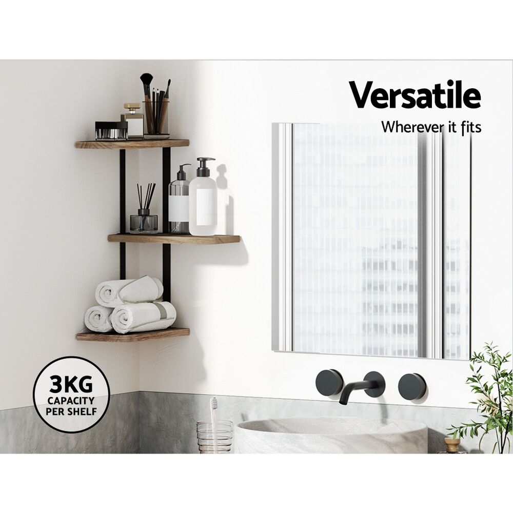 Make use of that empty corner with an Artiss Faro Floating Wall Shelf. Made from smooth and durable solid Paulownia wood with black powder-coated metal brackets, the shelves are not only easy to care for but very durable. Its 3-tier design is easily customisable with multiple installation modes, so you can fit them wherever they need to be bathroom, living room, kitchen or bedroom. The shelves have a rounded edge for safety and a 3kg weight capacity per shelf, making them a reliable addition to your home storage. Best of all, the shelves are easy to assemble wherever you can fit them, making them applicable to many types of walls. Make the most out of your empty corner space with the Artiss Faro Floating Shelves.