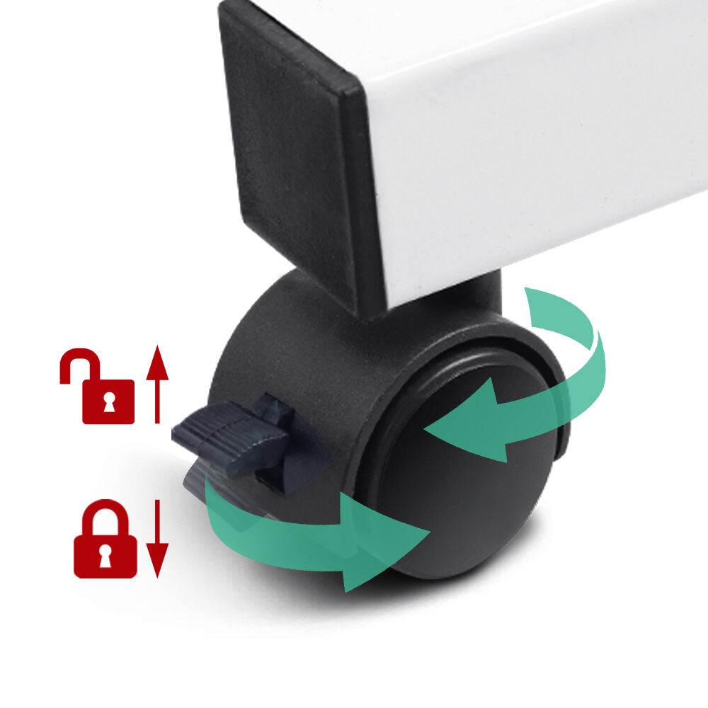 Designed to be strong and lightweight, our Mobile Laptop Desk has ample desk area to work efficiently without feeling cluttered. The height is easily adjustable to your preference and the U-shape design fits in well with most furniture such as sofas and beds to get a comfortable sitting position. The castor wheels rotate 360 degrees and can be readily locked down in place. Or, if you like, remove the detachable wheels for a more permanent fixture. Not least, with its thick 17mm MDF board desk top and sturdy powder-coated H-shape steel frame, our Mobile Laptop Desk is absolutely versatile to function as any type of table top.