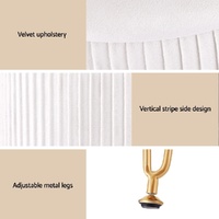 This round velvet Artiss footstool features a reversible table lid, vertical stripe design, durable MDF frame, high-resilience foam padding, and adjustable metal legs with floor protectors. Use it as a footstool, coffee table, and storage. Simple assembly required.