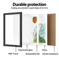 The Artiss Photo Frame 3-Piece Set offers an elegant way to showcase your 10"x14" prints. Each frame features durable construction with polystyrene glass, suitable for wall hanging in both portrait and landscape orientations.