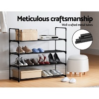 Sneakers, running shoes, flip-flops, boots, high heels, and special-occasion footwear, shoes are never enough! As our shoe collection gets out of hand, your first instinct may be to chuck them on the floor, gradually resulting in a shoe explosion. With our Artiss 80cm DIY shoe rack, you can keep your beloved shoes organised and prevent them from getting scuffed or looking worn. Our four-tier DIY shoe rack features a stackable design that allows you to store your shoes and find them easily. You can use this shoe rack together or separately, considering your shoe size and preferences. Featuring meticulous craftsmanship, our shoe rack boasts a sturdy and durable structure with black powder-coated metal tubes and non-slip foot pads. Each tier has a 10kg weight holding capacity and comes with 17cm each tier height, which makes it suitable for most shoe types. It can fit up to 16 pairs of shoes. Our shoe rack comes in a complete package. Its convenient design makes for hassle-free assembly. Furthermore, you don't require any tools to assemble it. Convenient and versatile, get our Artiss DIY shoe rack today.