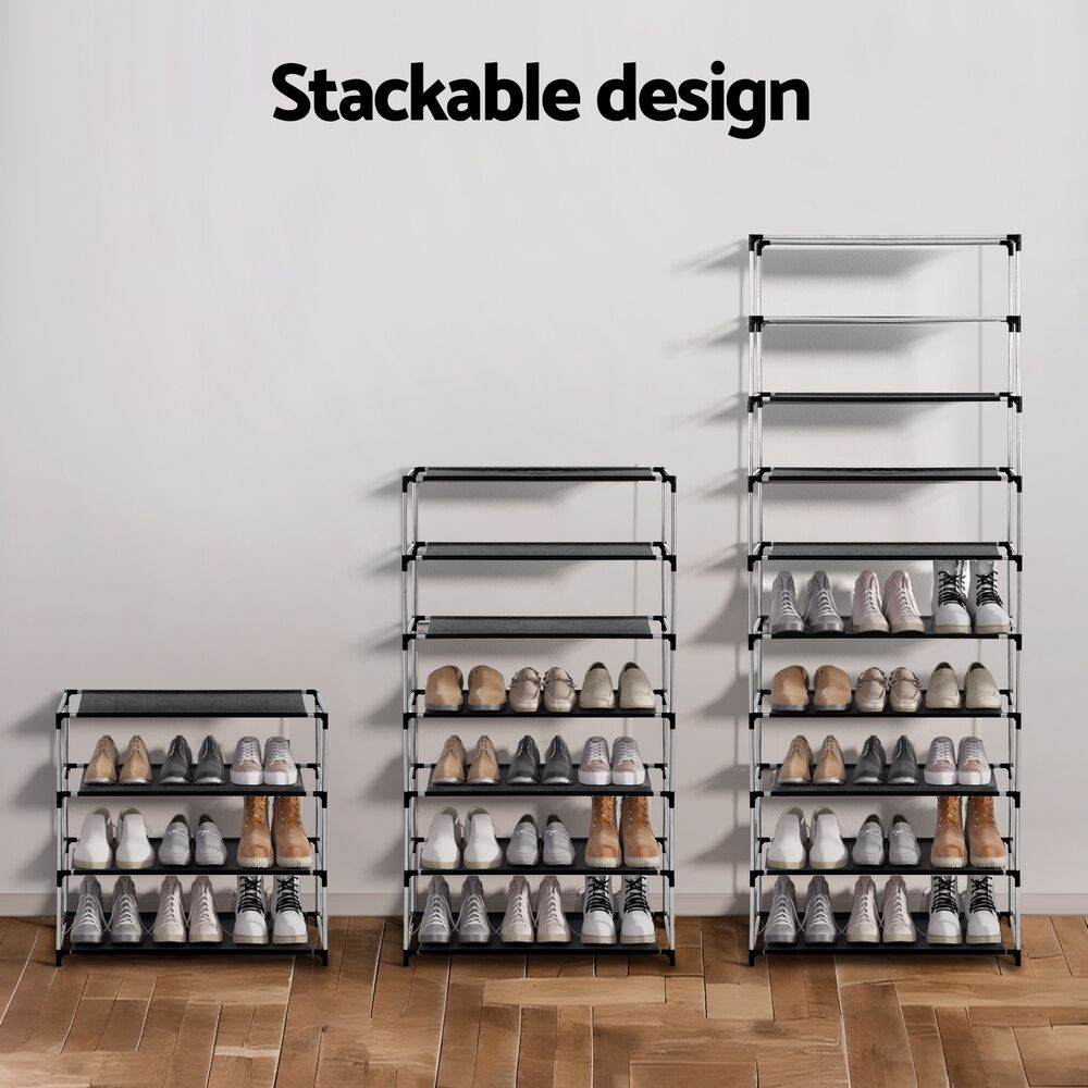As your shoe collection grows, so should your shoe storage. An Artiss Chad Shoe Rack is exactly what you need to keep loose shoes tidy and organised. Made from durable plastic connectors and a strong powder-coated metal frame, this multipurpose storage cabinet has a 5kg weight capacity per shelf, making it ideal for up to 27 pairs of shoes as well as bags, coats or other items to help start your day. The rack allows for easy ventilation, preventing bacteria growth, mould growth, and odours, while the non-woven fabric cover provides a clean, minimalist fa?ade. The cover features Velcro straps, convenient zipper closure, and can be removed as required. The rack can be constructed in multiple different configurations to suit your needs, and shelves can be easily added or removed to store differently-sized shoes. You can even expand your shoe cabinet to fit your current storage requirements: simply visit our store and purchase additional units to multiply and expand. Best of all, the rack doesn't require any tools to build: simply connect and go. With so many options at your disposal, it's easy to see why the Artiss Chad Shoe Rack is the right choice for your entryway, bedroom, or walk-in wardrobe.