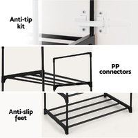 As your shoe collection grows, so should your shoe storage. An Artiss Dunn Shoe Rack is exactly what you need to keep loose shoes tidy and organised. Made from durable plastic connectors and a strong powder-coated metal frame, this multipurpose storage cabinet has a 5kg weight capacity per shelf, making it ideal for up to 20 pairs of shoes as well as bags, coats or other items to help start your day. The rack allows for easy ventilation, preventing bacteria growth, mould growth, and odours. The rack can be constructed in multiple different configurations to suit your needs, and shelves can be easily added or removed to store differently-sized shoes. You can even expand your shoe cabinet to fit your current storage requirements: simply visit our store and purchase additional units to multiply and expand. Best of all, the rack doesn't require any tools to build: simply connect and go. With so many options at your disposal, it's easy to see why the Artiss Dunn Shoe Rack is the right choice for your entryway, bedroom, or walk-in wardrobe.