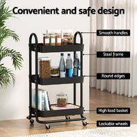 For convenient and portable storage, few can beat the classic Artiss Storage Trolley. With three tiers of deep trays, the trolley has a high storage capacity that is ideal for your craft room, kitchen, home office or playroom. Constructed with a steel frame, the unit is strong and stable whilst remaining lightweight and portable. Four smooth rolling wheels help you maneuver the trolley around the home, while two lockable wheels keep it in place. Thanks to its small footprint and vertical design, the trolley takes up very little space, fitting nicely anywhere in the home. Easy to install and maintain, you'll love having your essentials always at hand with the Artiss Storage Trolley.