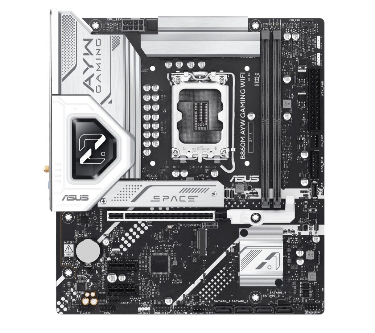 ASUS B860M AYW GAMING WIFI Micro-ATX Motherboard Up to 128GB DDR5 (2x Slots), 1 x PCIe 4.0, 2 x M.2 slots, WiFi 6,