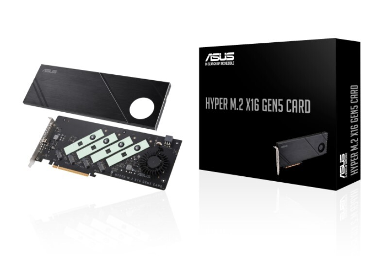ASUS HYPER M.2 X16 GEN5 CARD (PCIe 5.0/4.0) Supports up to four NVMe M.2 (2242/2260/2280/22110) devices at up to 512 Gbps for RAID functions