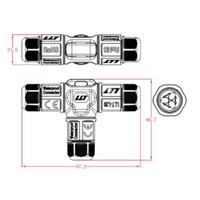 3 way waterproof connector with silicon gel gasket. It has a nylon glass fiber reinforced casing. 380Vac 25A power rating. IP68 waterproof. To suit circular cable with 6.5mm to 10mm diameter. For flat sheathed cables, connector ends need to be sealed with waterproof compound