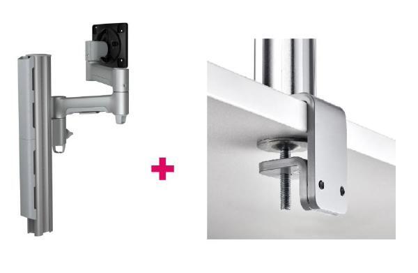 AWMS-4640 is a single swing monitor arm attached to a post. The swing arm reaches up to 448mm (17.64") from the post, and the head has smooth fingertip tilt, pan, and landscape-portrait rotation. This enables easy adjustment for optimal viewing angle and an ergonomic desk setup. Another benefit of the swing arm is easy access to cables and monitor ports at rear